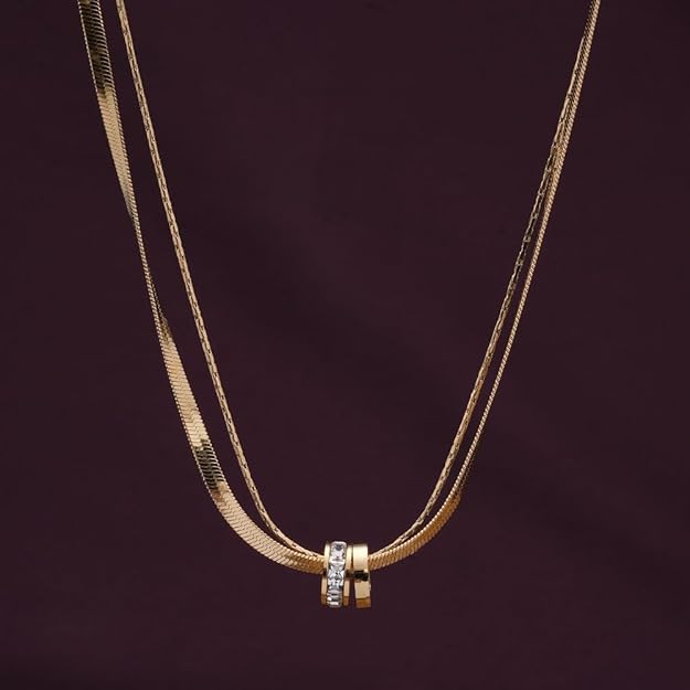 KIANABYKASHI 18k Gold Plated Gilded Rings Layered Necklace for Women – Gift for Girls & Women | Waterproof & Anti-Tarnish Necklace