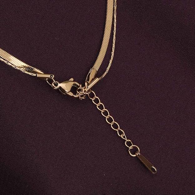 Add effortless elegance to your look with this gold layered pendant necklace. Featuring a sleek herringbone chain paired with a delicate chain and a minimal crystal-accent pendant, this piece blends modern sophistication with timeless charm. Crafted with anti-tarnish, waterproof, and skin-friendly materials, it is perfect for everyday wear or special occasions. Style it solo or layer it for a chic statement.